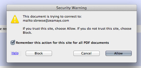 When you hit submit, you should see a popup window like below. Choose 'Allow' for the PDF to properly attach.